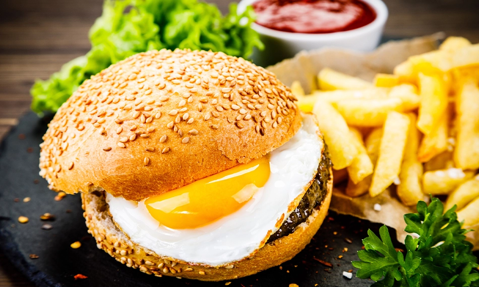 Geniet van een heerlijke burger of schnitzel naar keuze om af te halen bij Cafetaria Het Bijvank: inclusief verse, zelfgemaakte patat, mayonaise en rauwkost