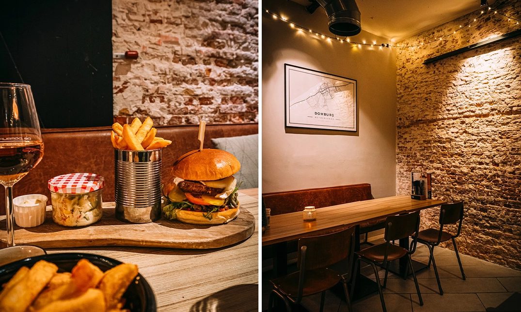 Bij Restaurant de Domburger draait alles om goed eten, gezellig tafelen en pure kwaliteit. Dit populaire burger- en grillrestaurant in het hart van Domburg is dé plek voor liefhebbers van smaak, sfeer en versbereide gerechten. Gelegen op loopafstand van het strand, is het de ideale plek om je dag in stijl af te sluiten met een heerlijk diner in een ontspannen setting. Kies uit een van de heerlijke (vega) burgers van de kaart: stuk voor stuk bereid met zorg en geserveerd op luchtig brood met friet, salade en saus.