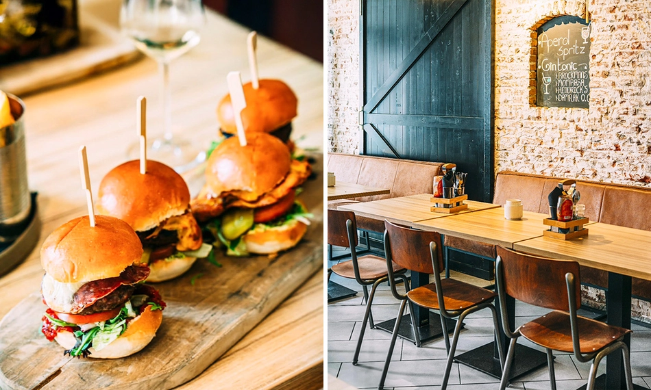 Geniet in dit moderne en eigentijdse hamburgerrestaurant van een hamburgermenu, compleet met groenten, friet en saus geserveerd op een houten plank, een verse salade, plategerechten, een lekker malse steak of een van de diverse vegetarische opties. Kies daarnaast een passend speciaalbiertje, wijntje of een glas fris van de de uitgebreide drankkaart. Ultiem genieten voor de échte vleesfan!