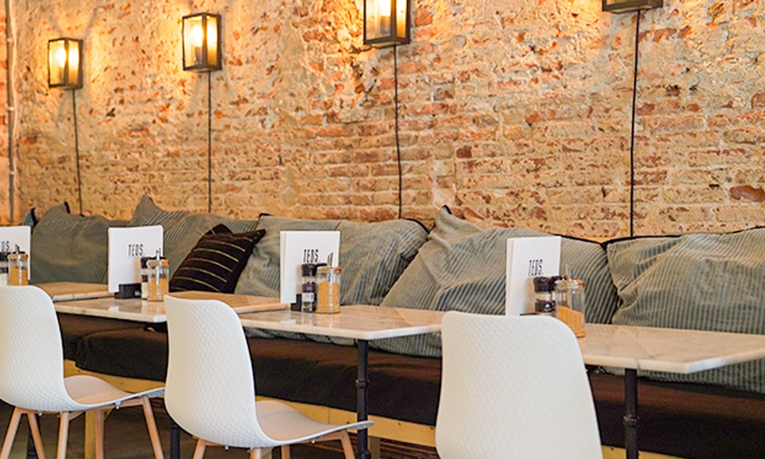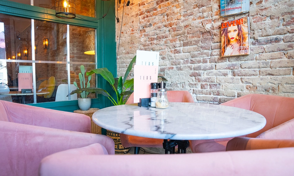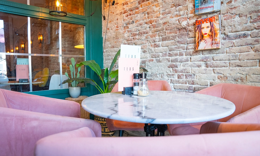Teds is een gezellige all-day-brunchzaak aan het Spaarne net buiten het historische centrum van Haarlem. Grote lampen, leuke quotes op de muur en een combinatie van zachte kleuren; wanneer je binnenloopt voel jij je meteen thuis.